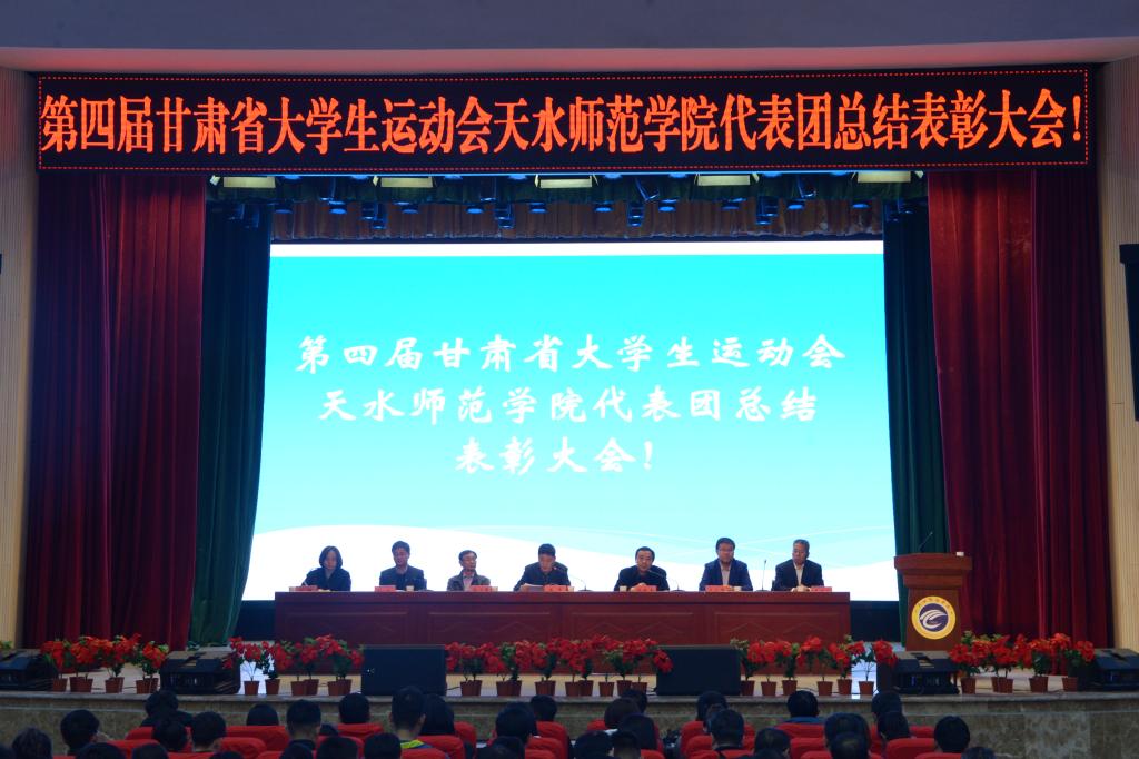 10月14日下午,第四届甘肃省大学生运动会天水师范学院代表团总结表彰大会在学校文化大礼堂召开。学校党委副书记、校长安涛出席会议并为受到表彰的单位和个人进行颁奖。校工会、学生处、团委、二级学院相关负责人,今年会jinnianhuicom全体师生和代表团全体运动员、教练员、工作人员共计800余人参加大会。大会由副校长、校体委主任安建平主持。