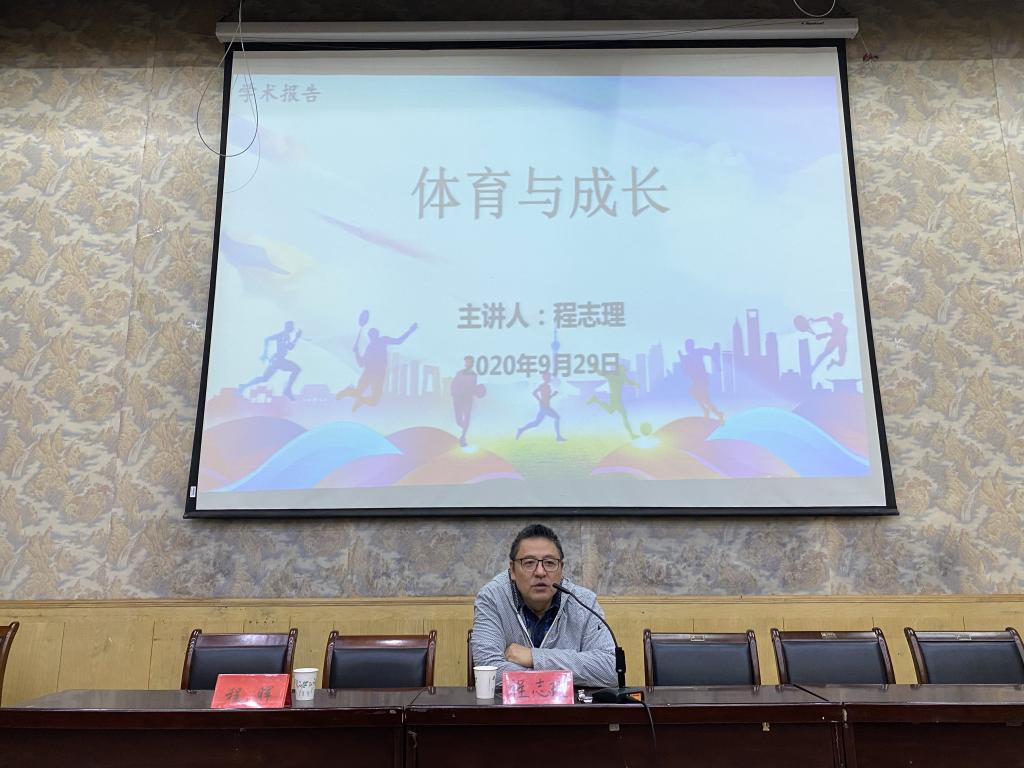 程志理主编提及:体育本体特征是快乐,而现实是我们把体育手段论扩大化,忘记了体育目的——快乐!我们没有注意体育在人的发展过程中意义——我们的认知体系中,身体认知在先,且是基础性认知。简短的开场,把师生们情绪调动起来,接下来他从三个主题谈体育与成长关系:(1)从身体运动的主体性特征入手,引发出人体动作行为过程中“意识活动”与“无意识活动”的区分。他说:“我们往往强调概念认知,致使认知体系中存在严重缺失,即忽视身体在认知中的价值与意义,致使运动实践中运动主体习惯于(或注重)脑的思维,而忽略对自身身体的认知”。(2)系统阐述了“身体认知”的时空经验,用实例验证了运动者是以自己身体来感知时间和空间,人体是复杂适应系统,身体同样是一种认知方式,体育学应该纳入认知科学,践行体育的方法论意义。程志理强调,体育学的研究应该从生物学层面回归到人类学,体育作为学校教育的内容,从价值关系上讲,体育是人的成长方式。(3)体育是人学研究巅峰。程老师深入浅出,入情入理。在报告中特别强调一个概念——体认。指出,体认是低级形式,但是体认是基础认知形式。体认范式研究方法重视“本体感受”,“本体感受”是体认的认识论表述,为此,运动情境的口述史成为体认方法学的论证依据,并以“地心说”到“日心说”的例子,有效支撑了自己的观点。