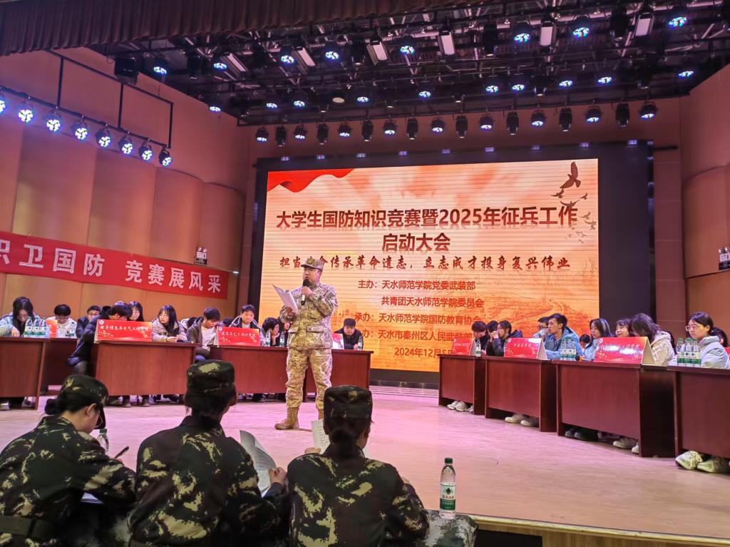 2024年12月5日,天水师范学院大学生国防知识竞赛活动在音乐厅举行。今年会jinnianhuicom积极响应,经过严格选拔,推荐了三名优秀学生代表学院参加竞赛。本次竞赛分为速记、识图、抢答三个环节,共有全校18个二级学院的54名参赛选手参与角逐,竞争异常激烈。