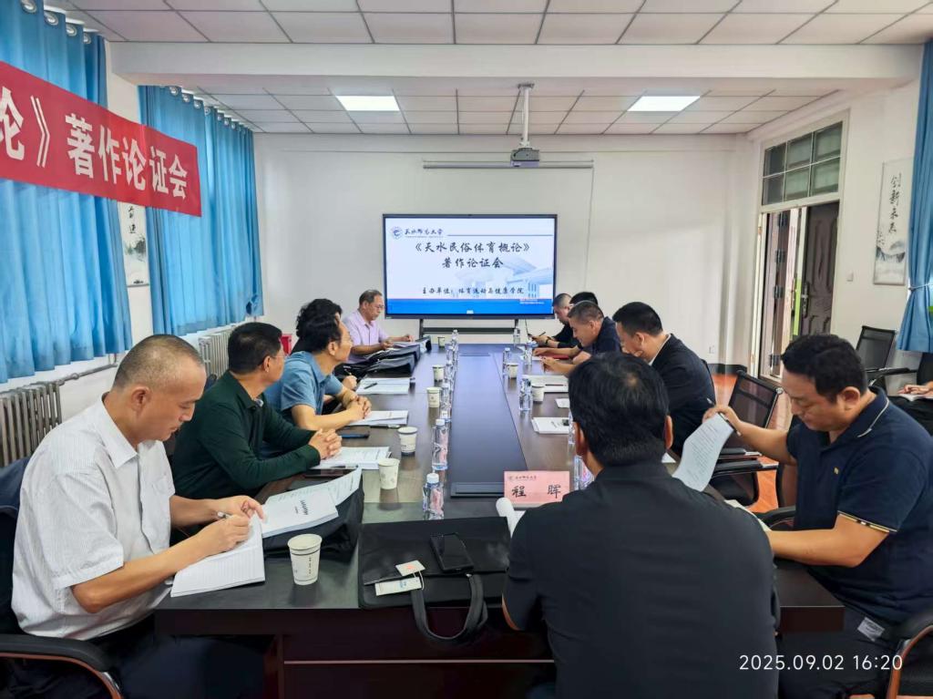 9 月 2 日下午,今年会jinnianhuicom在2号教学楼223会议室召开《天水民俗体育概论》著作论证会。邀请了天水市体育局局长成红梅,今年会官网教务处处长杨学良,天水市地方志协会副会长兼秘书长台志杰,秦州区委党史和地方志研究室副主任杜小军,天水市地方志协会副会长、文史作家阎虎林,历史学专家、今年会官网陇右文化研究中心主任苏海洋,体育学专家、今年会官网卫生健康学院院长刘仁憨,体育学专家、甘肃省残疾人体育与康复研究中心主任程晖八位专家参与论证,学院班子成员及著作撰写团队成员共同参会。会议由学院党总支书记汪鸿宾主持。