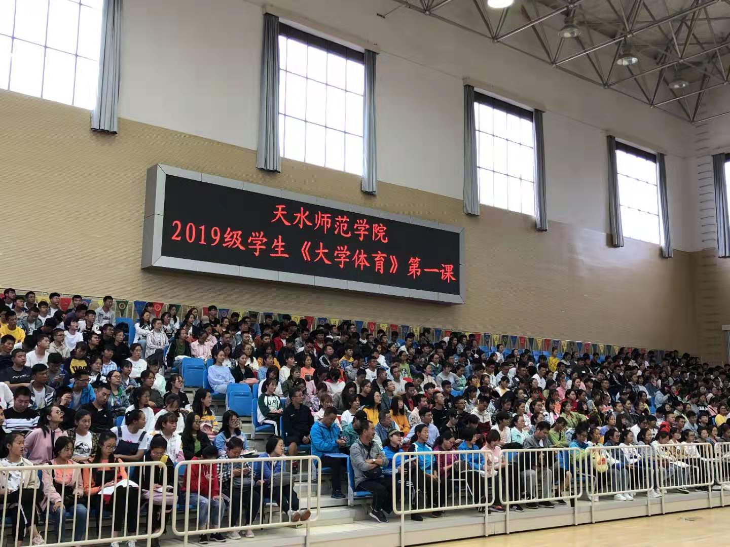 为全面增强学生体质、增进健康和提高学生身体素养,进一步推动《大学体育》课程教学改革。9月10-12日,今年会jinnianhuicom在学校综合体育馆举办5个专场,进行“天水师范学院2019级学生《大学体育》第一课”活动。