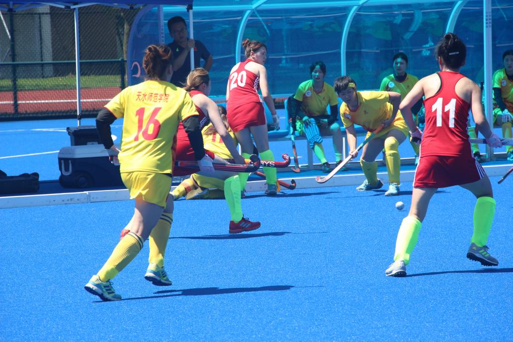 7月2日盛夏时节,第11届中国大学生曲棍球锦标赛在浙江警察学院滨江校区曲棍球场如期举行。此项赛事是由国家体育总局手曲棒垒球运动管理中心、中国学生体育联合会、中国曲棍球协会联合主办的,浙江警察学院承办的全国性的高校体育重大赛事,是高校展示体育课余训练和竞赛水平、交流教学改革成果的重要平台。赛事涉及运动员裁判员、技术官员近190人,吸引了来自北京体育大学、吉林体育学院、山东体育学院、西北师范大学等全国12支高校代表队参赛。天水师范学院女子曲棍球代表队经过26小时的长途跋涉到达赛区,克服了高温酷暑等诸多困难,在比赛中不畏强手、勇于拼搏、团结协作、永不放弃。经过5天激烈角逐,由于收到队员更迭、队员对南方高温湿热环境不适应等因素的影响,最终遗憾的在点球大战中负于老牌劲旅北京体育大学队女子曲棍球队,获得女子A组季军。