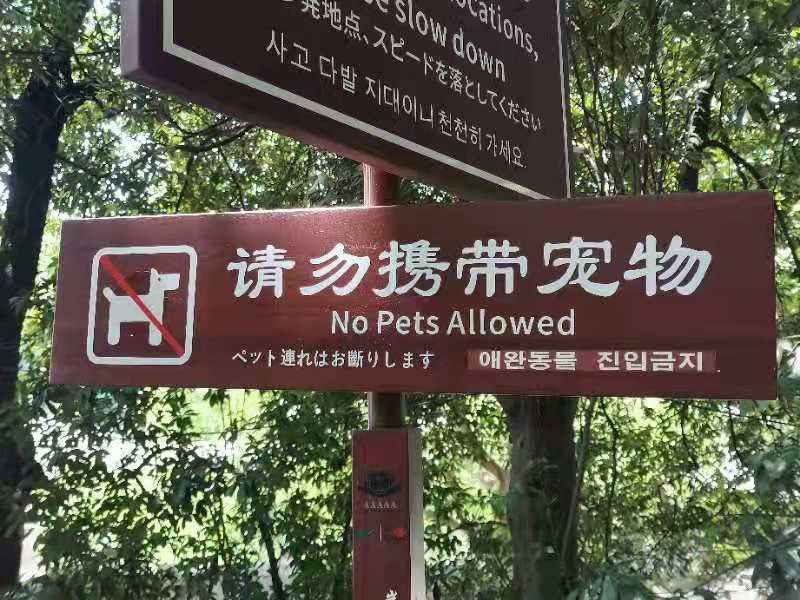 考察伊始,调研组组长欧欣榆强调了此次实地考察的重要性。她指出,如今在公共场所中,我们随处可见中文公示语的指示牌上配有英文公示语翻译,但仔细思考却发现其中充斥着各种错误,让人啼笑皆非。而此次实地考察便是为了从游客的体验角度切实感受一些公示语标志上英文翻译的得当与否,要求调研组成员主动体会思考并尝试修正“所表之意”与“欲表之意”之间的误差,从而指导队员理解公示语翻译,促进其对公示语翻译认知的提高。